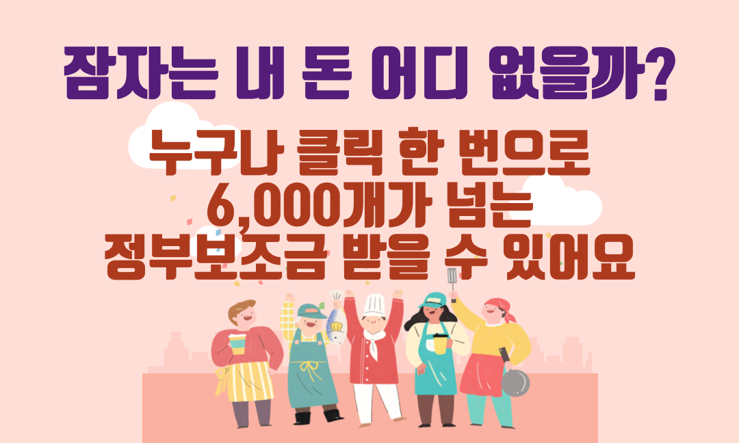 국민이 받을 수 있는 정부지원금이 무려 6천 개에 달합니다. 지원 정보를 몰라서 지원금을 받지 못하는 경우가 허다합니다.